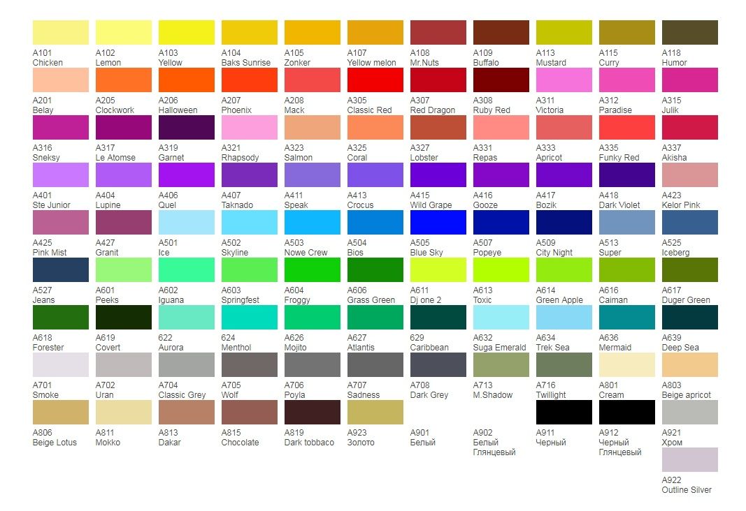 Каталог цветов СВЕТОФОР - для ручной колеровки красок колер-пастами "Светофор"