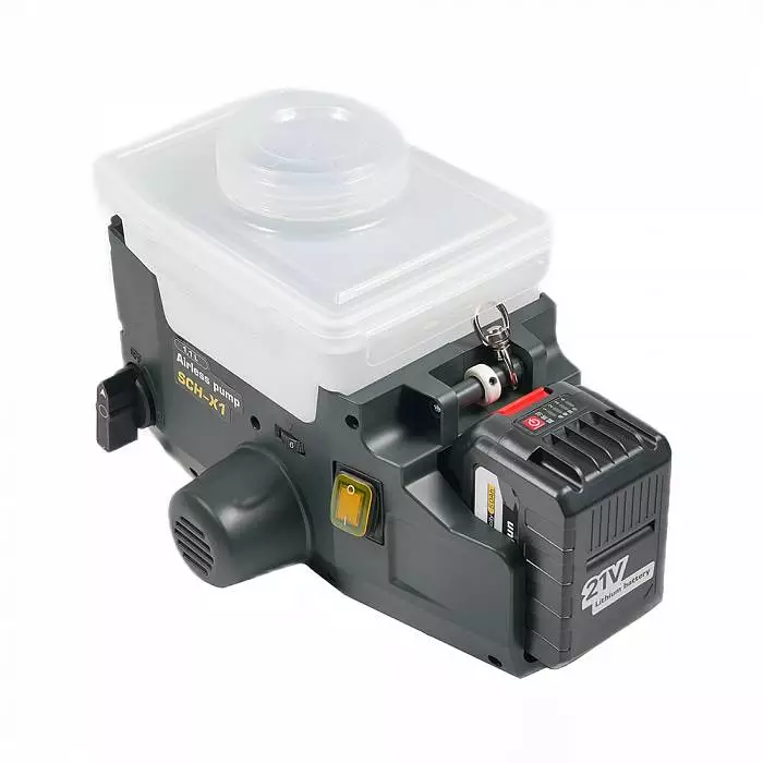 SCHTAER SCH-X1 — это мощный и мобильный аккумуляторный краскораспылитель безвоздушного типа, предназначенный для профессионального нанесения красок, эмалей, лаков и других ЛКМ на различные поверхности. Благодаря автономной работе от аккумулятора и высокой производительности, инструмент идеально подходит для строительных, отделочных и малярных работ как в помещениях, так и на открытых площадках.