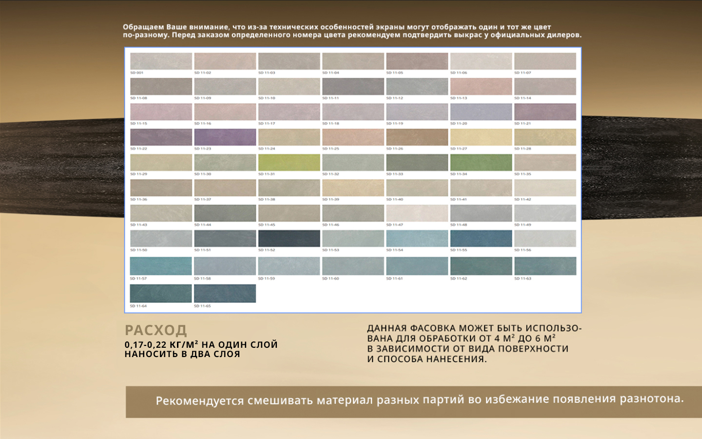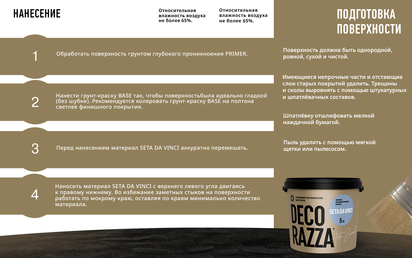 Важно! Материал наносить при температуре воздуха 15-25 °С и относительной влажности воздуха не более 65%. Не допускается смешивание с материалами других производителей.