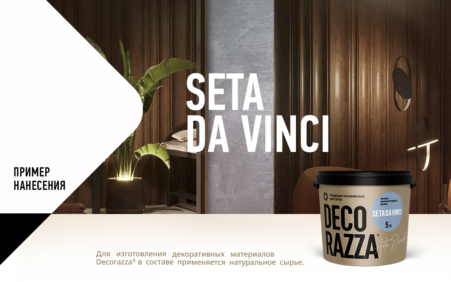 Используйте материал Decorazza Seta da Vinci с серебристой базой и улучшенной укрывающей способностью, чтобы получить изысканное экологичное покрытие, устойчивое к влажной уборке. За счет наличия в составе перламутровых частиц декор получается более выразительным и многомерным. Краску на основе водной дисперсии акрилового полимера можно колеровать в спокойные пастельные оттенки по каталогу компьютерным способом, после нанесения использование защитных лессирующих покрытий не требуется.