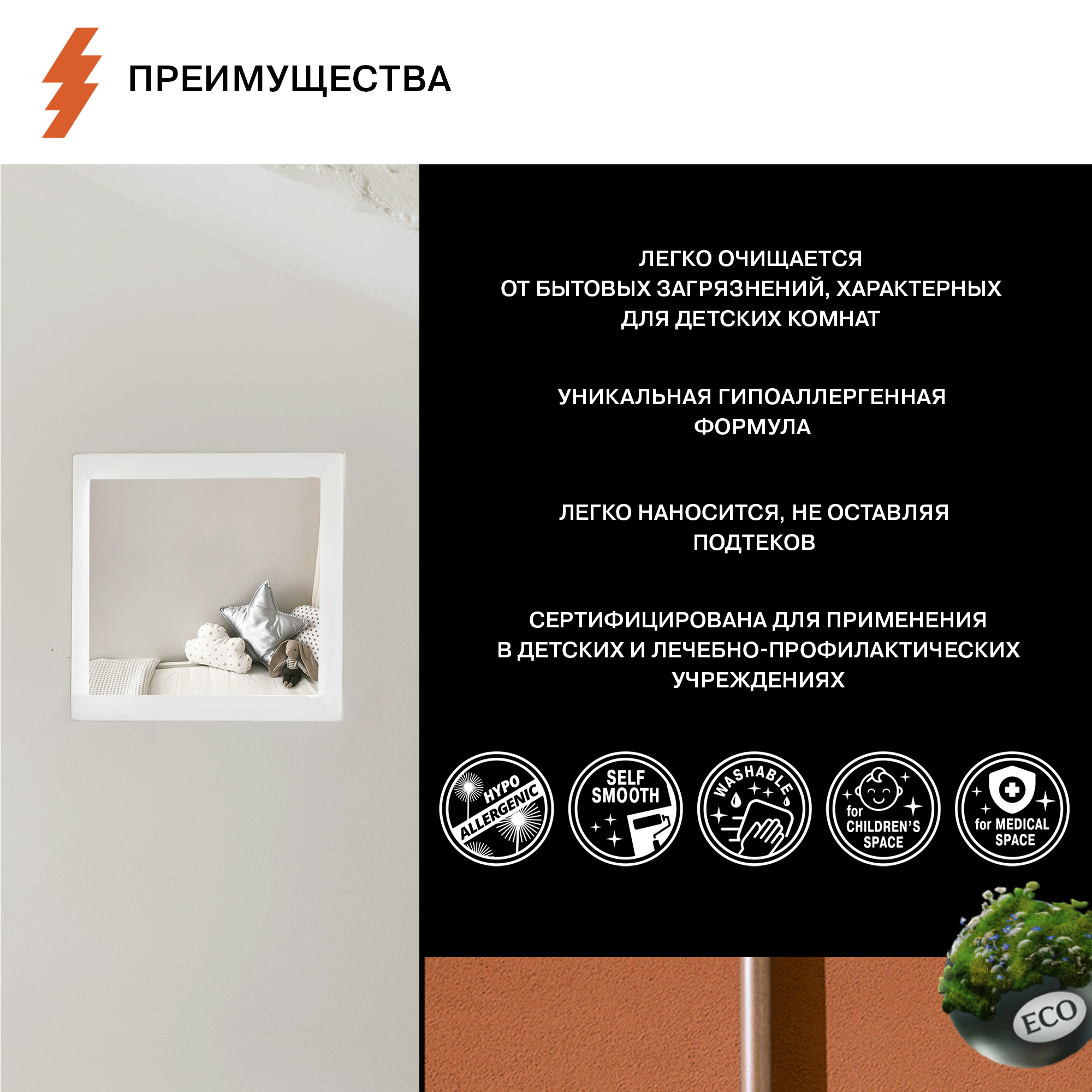 Краска для детских и спален предназначена для нанесения на предварительно подготовленные минеральные основания: бетон, бетонные блоки, кирпичная кладка, цемент, цементная штукатурка, гипс, гипсовые и гипсокартонные плиты и т.д.
