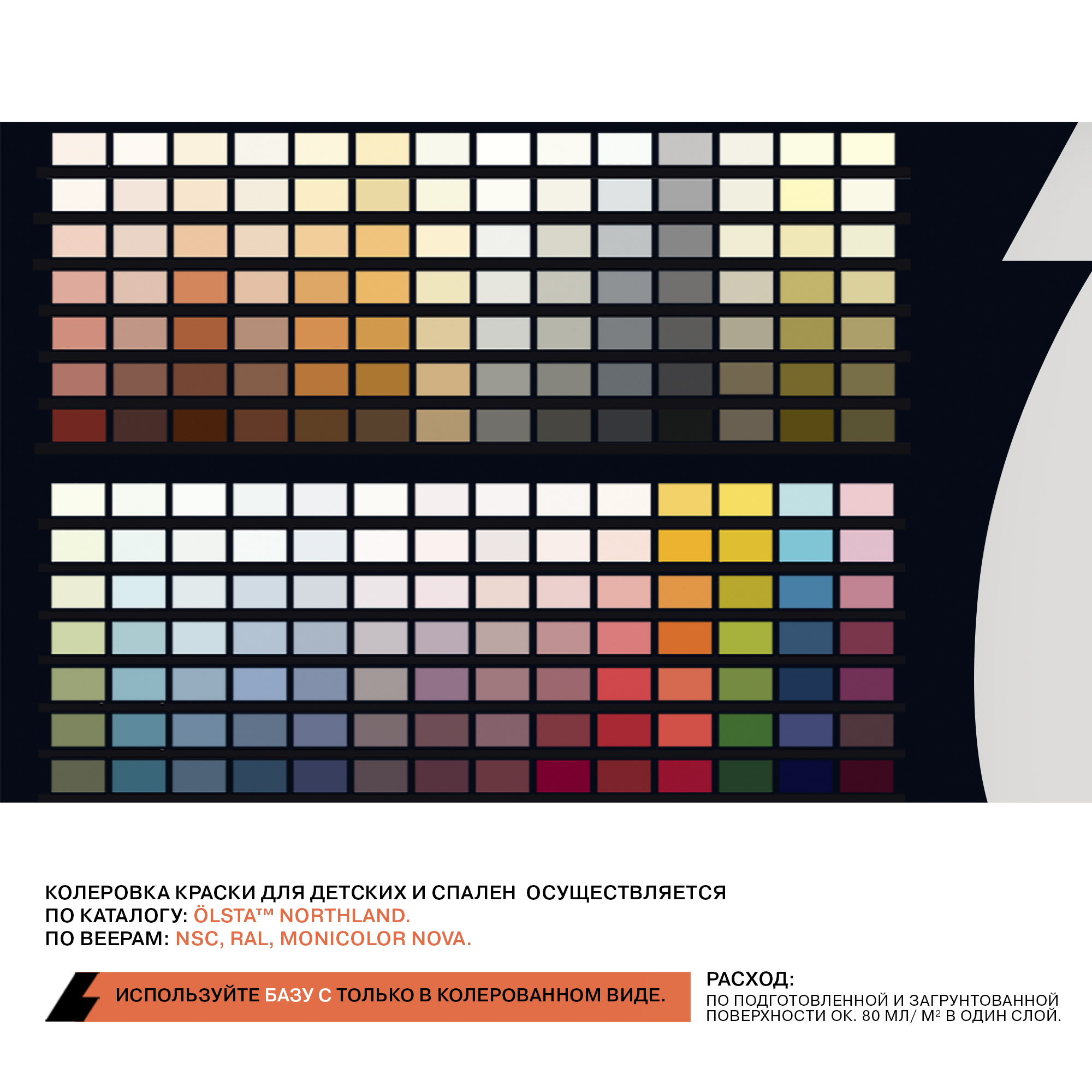 Матовая краска Olsta Kids & Bedroom разработана специально для отделки детских и спален. Состав на основе водной дисперсии акрилового полимера отличается гипоаллергенной формулой, формирует ровное прочное покрытие без подтеков. Поверхность легко отмывается от загрязнений мягкими чистящими средствами, не боится влажной уборки. Производится с белой и прозрачной базой для компьютерной колеровки в насыщенные оттенки по каталогу.