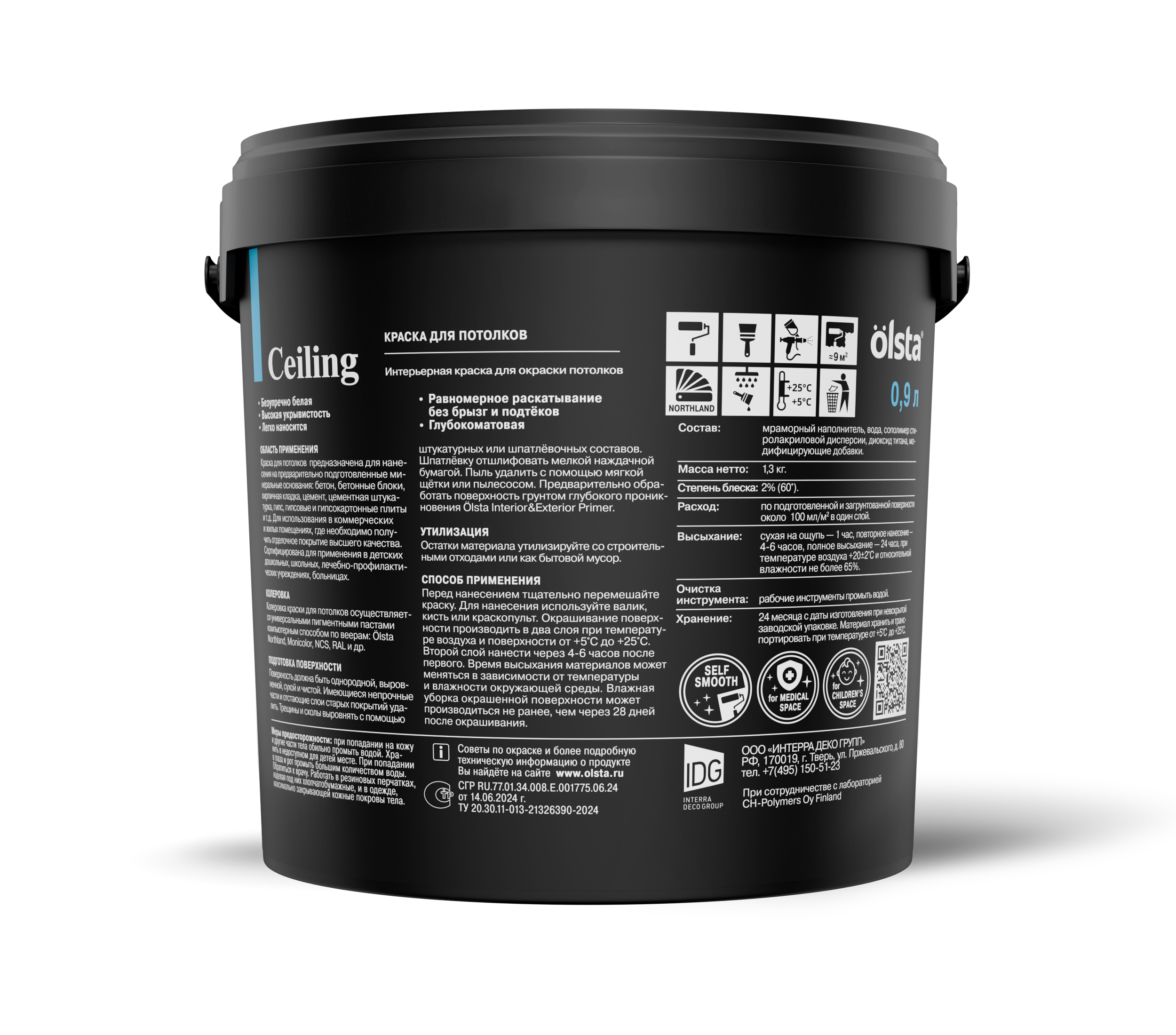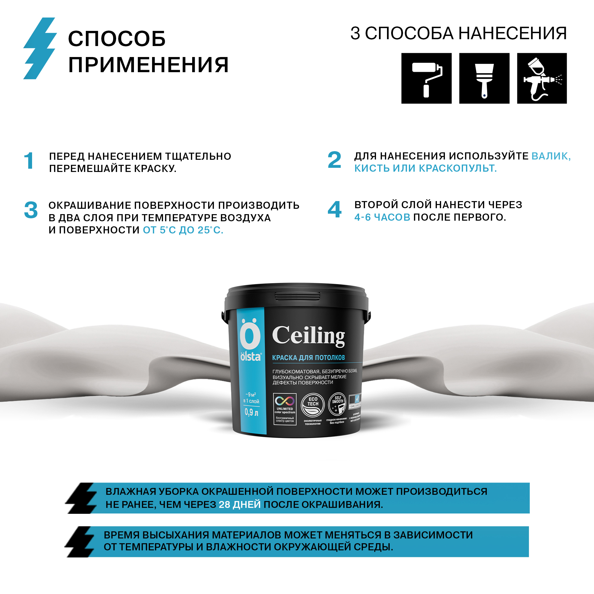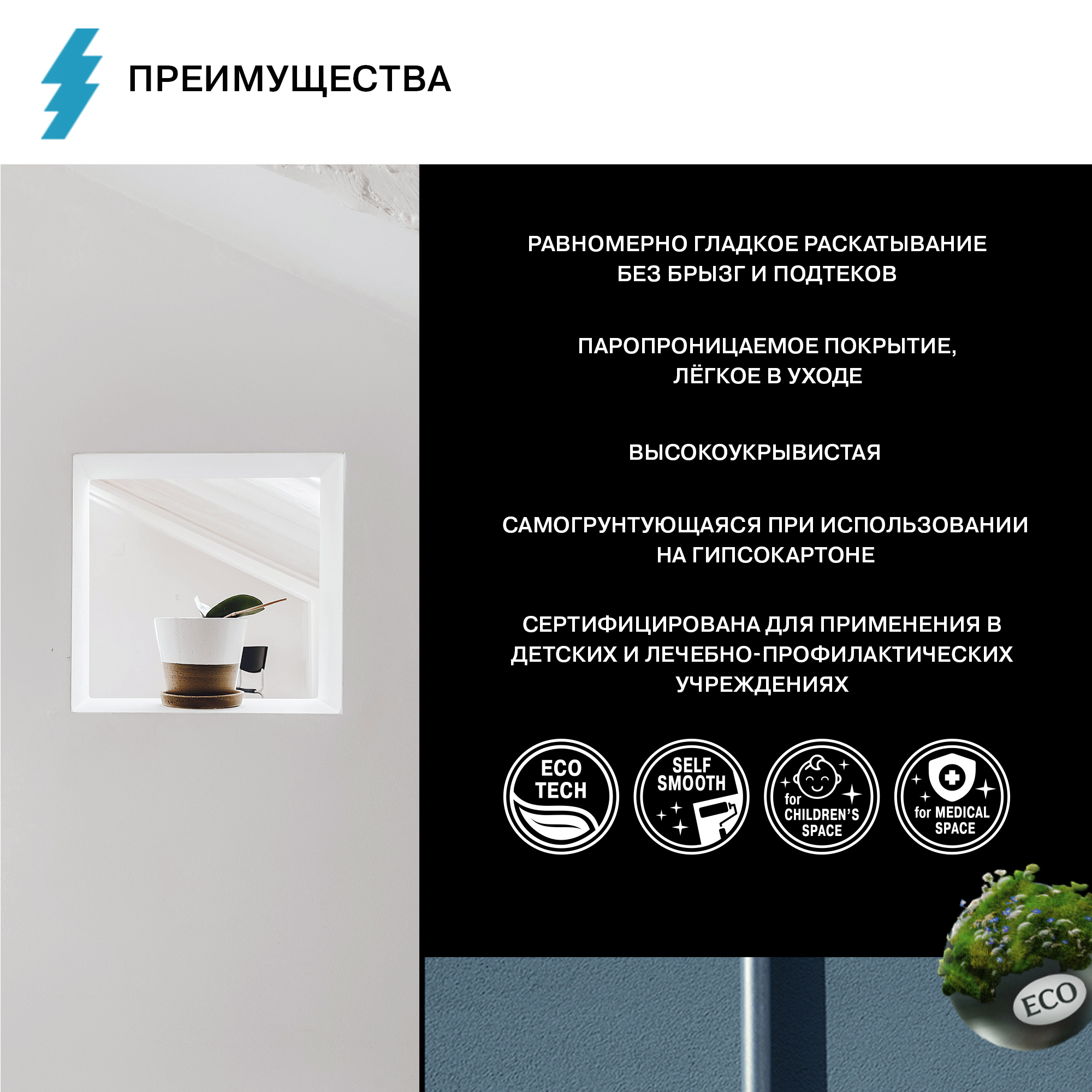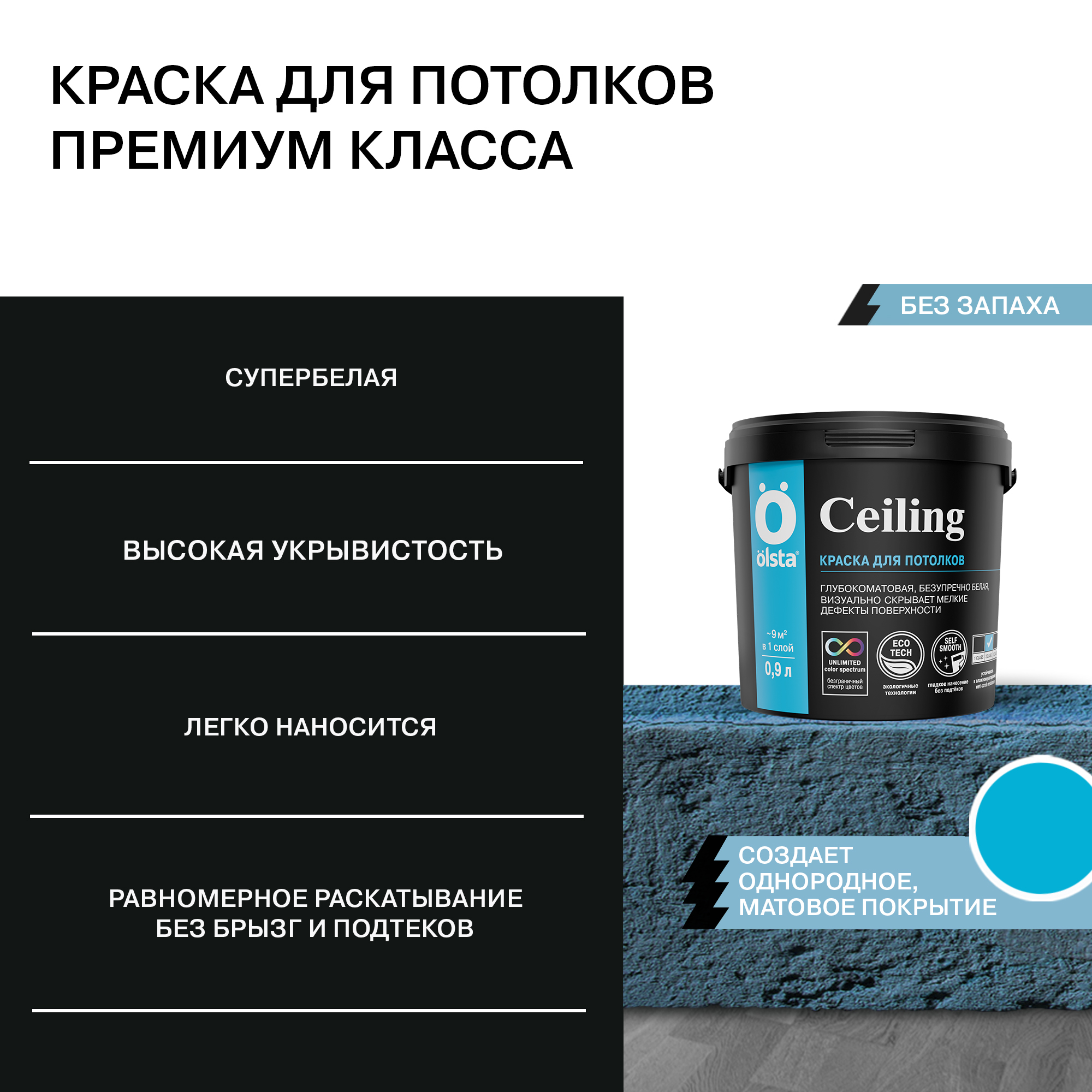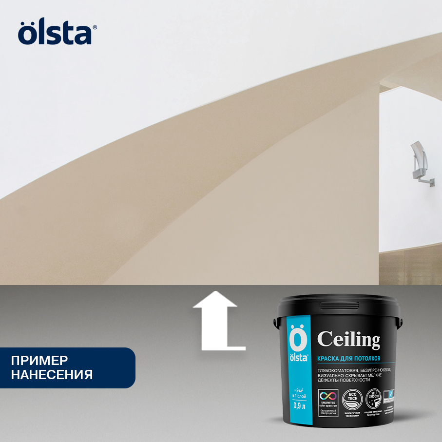 Белоснежная, глубокоматовая акриловая краска, разработанная для нанесения на потолки, создает однородное матовое покрытие и обеспечивает максимальное диффузионное отражение
