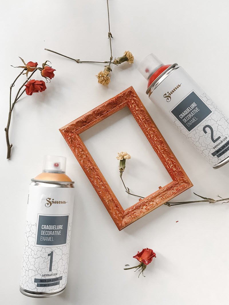 Важно! Трещины образуются только при использовании одновременно двух баллонов Siana Craquelure Base coat (базовый слой) и Siana Craquelure Top coat (финишный слой).