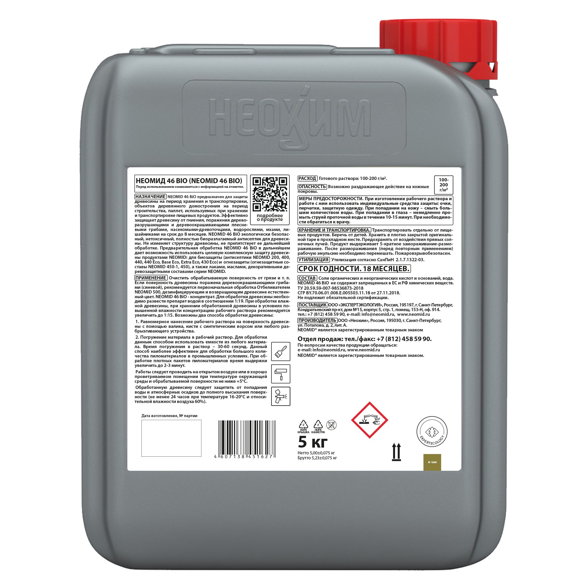 NEOMID 46BiO экологически безопасный, нетоксичный, полностью биоразлагаемый антисептик для древесины. Не изменяет структуру древесины, не препятствует ее дальнейшей обработке.