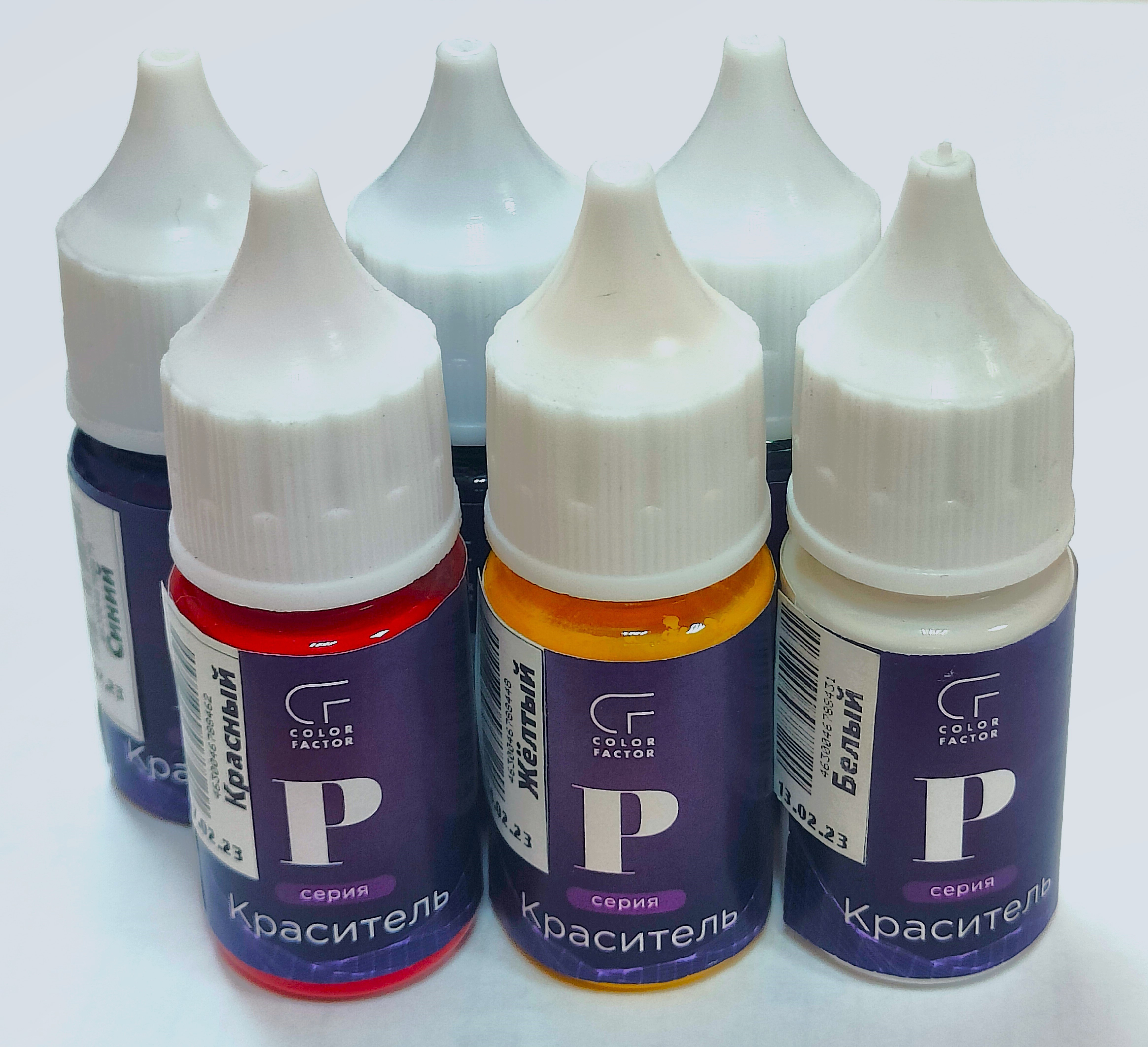 Набор красителей для смол 6 шт - белый, черный, зеленый, желтый, синий, красный