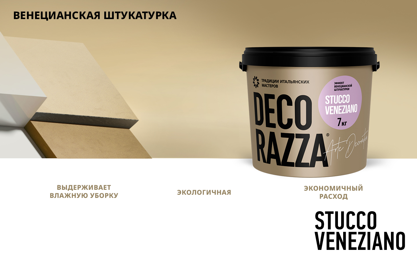 Венецианская штукатурка Stucco Veneziano позволяет воссоздать в интерьере атмосферу эпохи Возрождения с ее неповторимой роскошью и благородством. При нанесении и полировке материал достоверно имитирует изысканный мрамор, оникс и другие минералы с глянцевой полированной поверхностью, также возможно создание эффекта «Жатая ткань» и других.