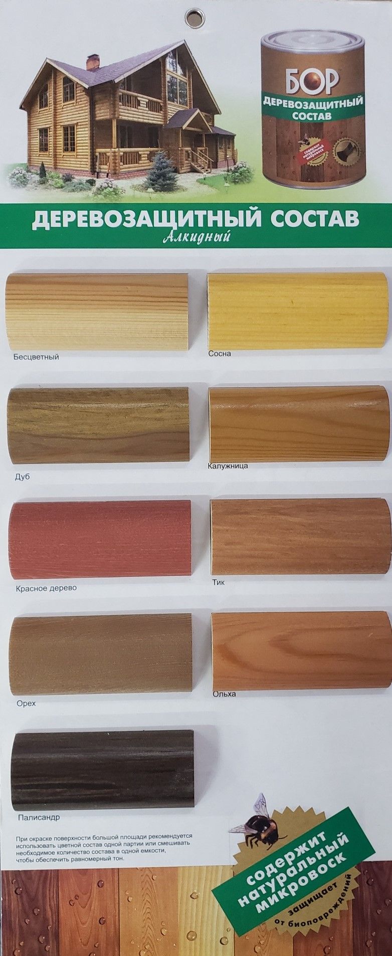 защищает древесину от биологических повреждений (синевы, плесени, гнили, грибка),